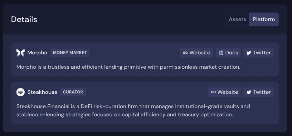 Bringing these two perspectives together, it’s clear that curated products are a different breed to our typical vaults and CLMs. We therefore need to strive towards a compromise of more information on the application with adjusted expectations as to what is being performed. Beefy is not a curator, and does not assume the responsibility of selecting exposures for the user. But more information can and should be given.